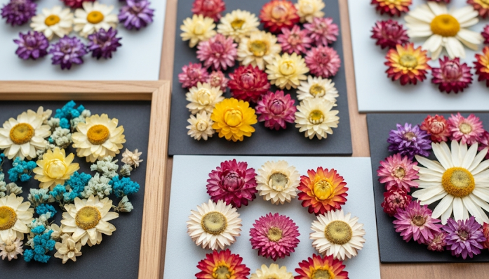 ✔ Сухое, тёмное место: Готовые картины и неиспользованные сухоцветы следует хранить вдали от прямых солнечных лучей и влаги, чтобы предотвратить выцветание и порчу.